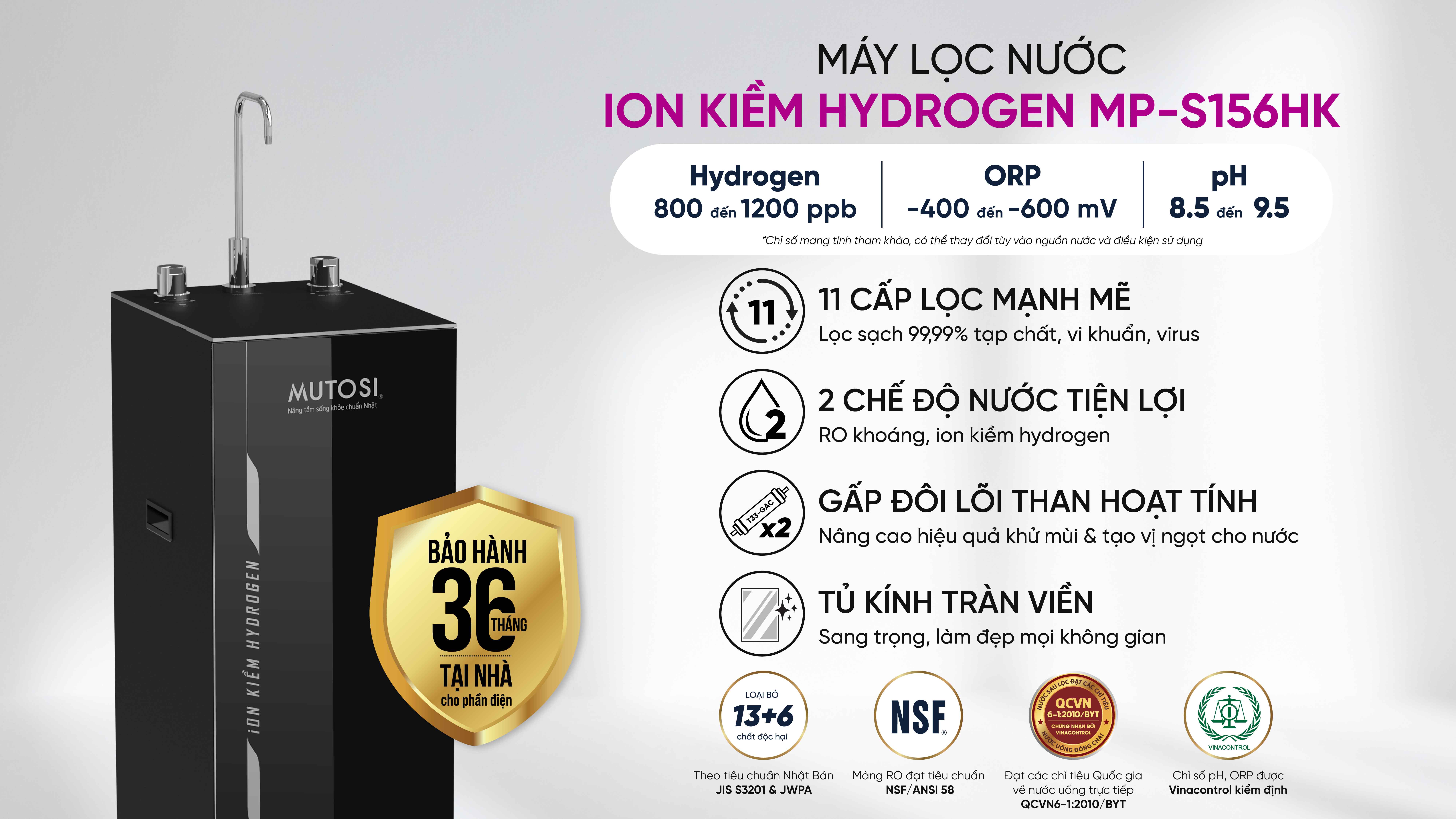 Máy lọc nước ion kiềm hydrogen Mutosi MP-S156HK
