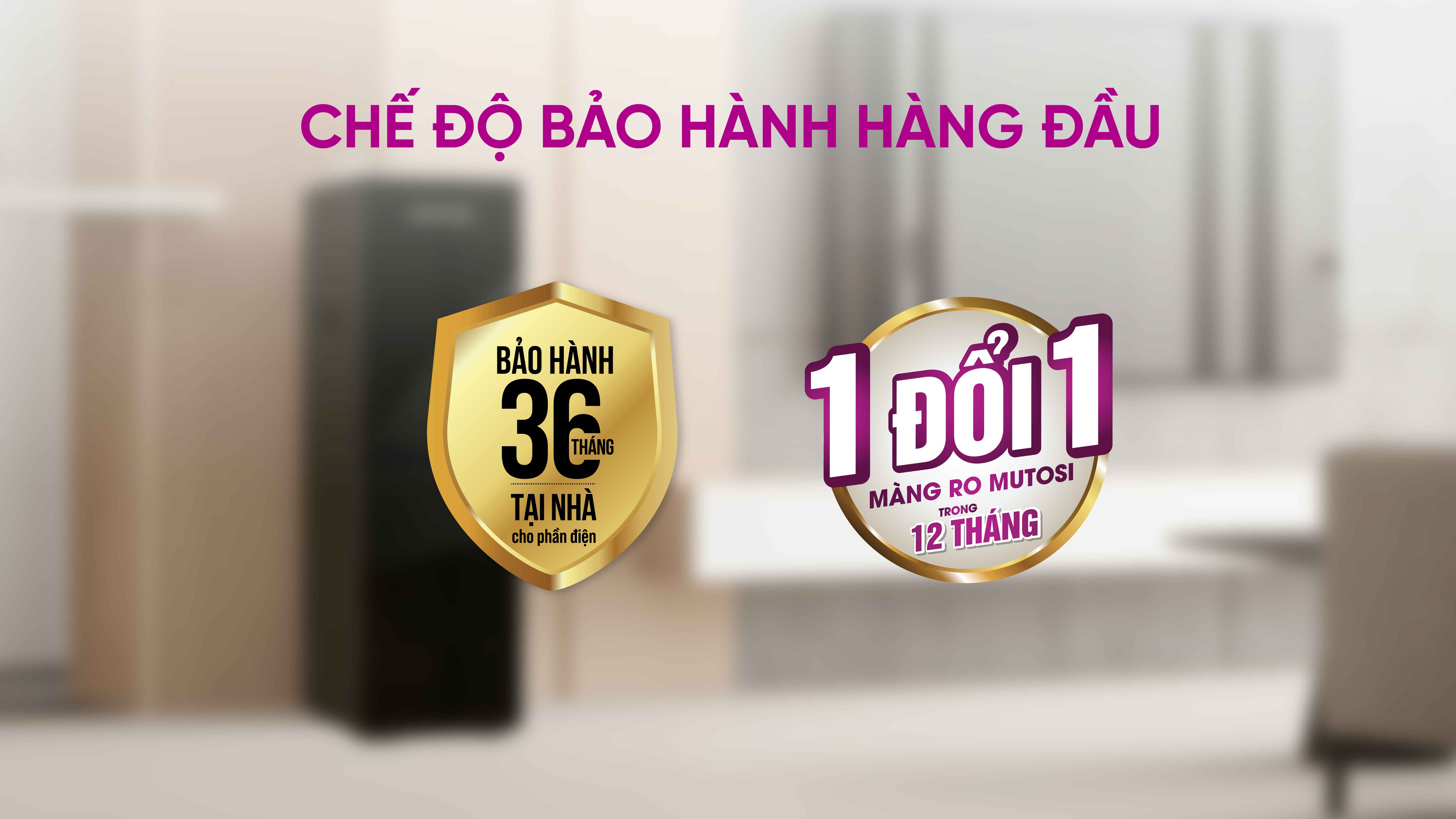 Phần điện: 36 tháng, 1 đổi 1 màng RO trong vòng 12 tháng