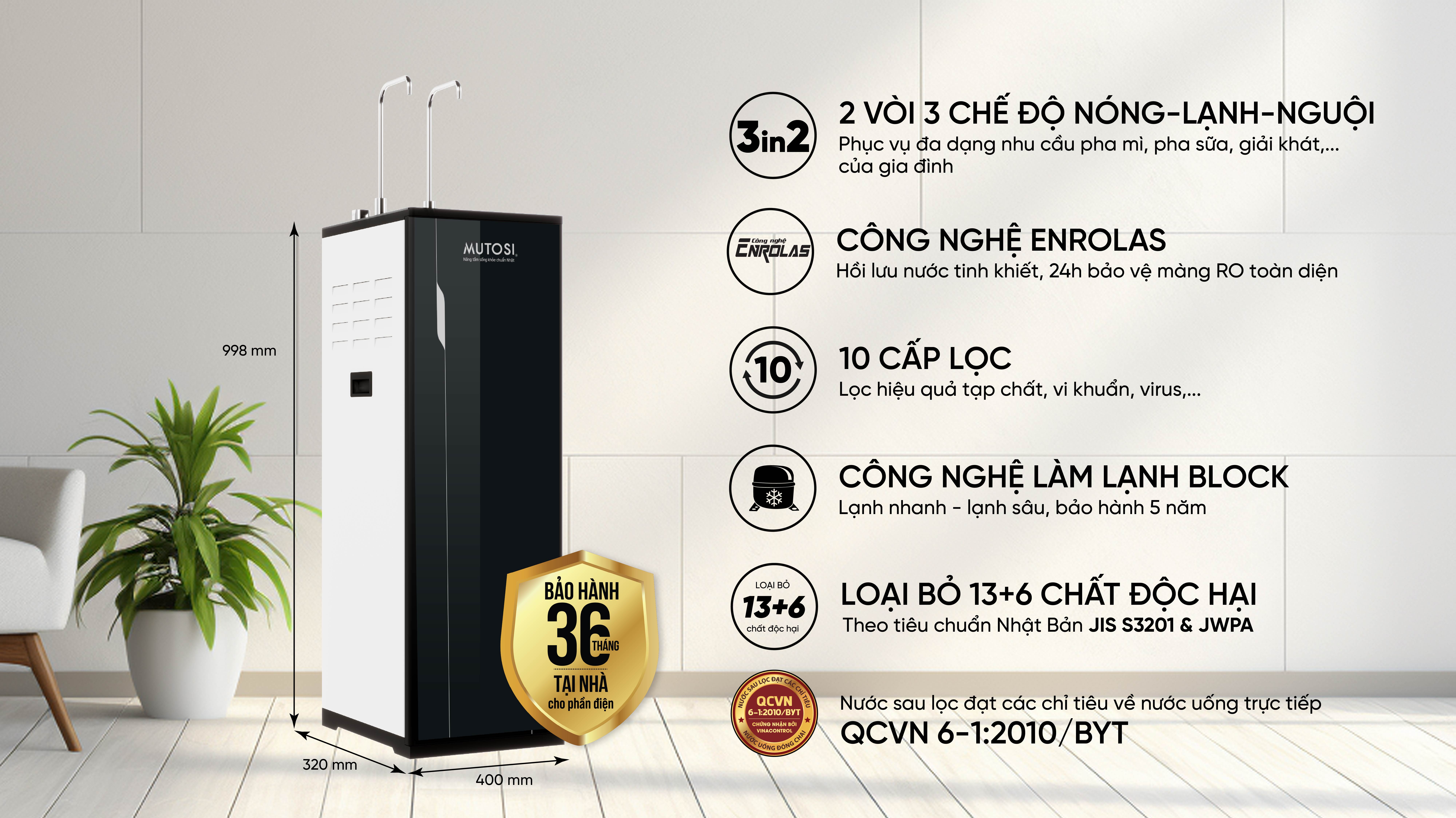 Máy lọc nước nóng lạnh nguội Enrolas Mutosi MP-S38HCE